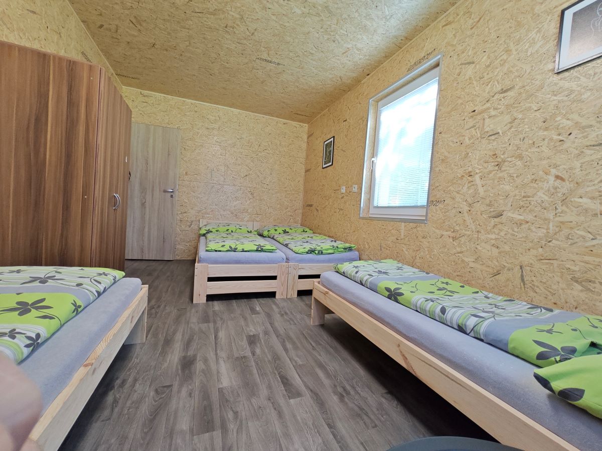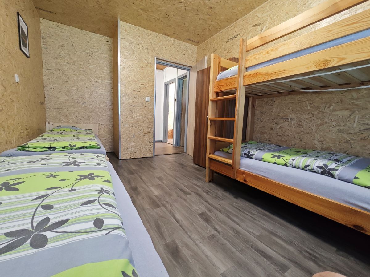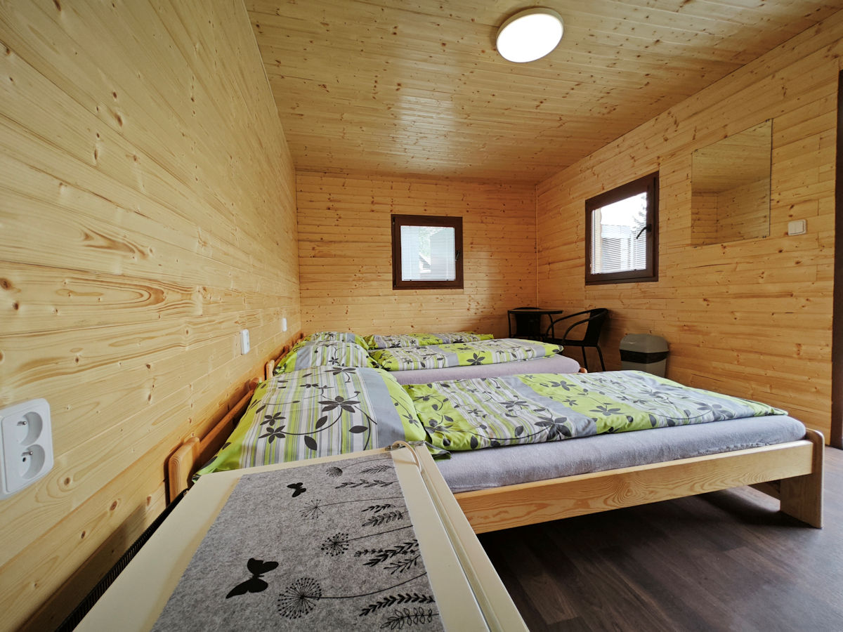 V kempu se nachází ctyři bungalovy, v každém bungalovu se nachází jeden dvoulůžkový pokoj a dva pokoje čtyřlůžkové, všechny pokoje se nachází v přízemí. Ubytování je tedy možné pro 10 osob. Součástí bungalovu je sociální zařízení (pro celý bungalov společné) a také kuchyňka vybavená základním nádobím (hrnky, skleničky, příbory, pánev, talíře), plotýnkovým vařičem, mikrovlnou troubou a umývadlem s teplou a studenou vodou.