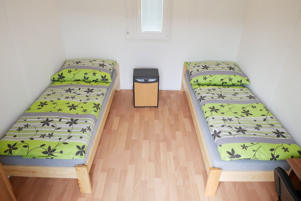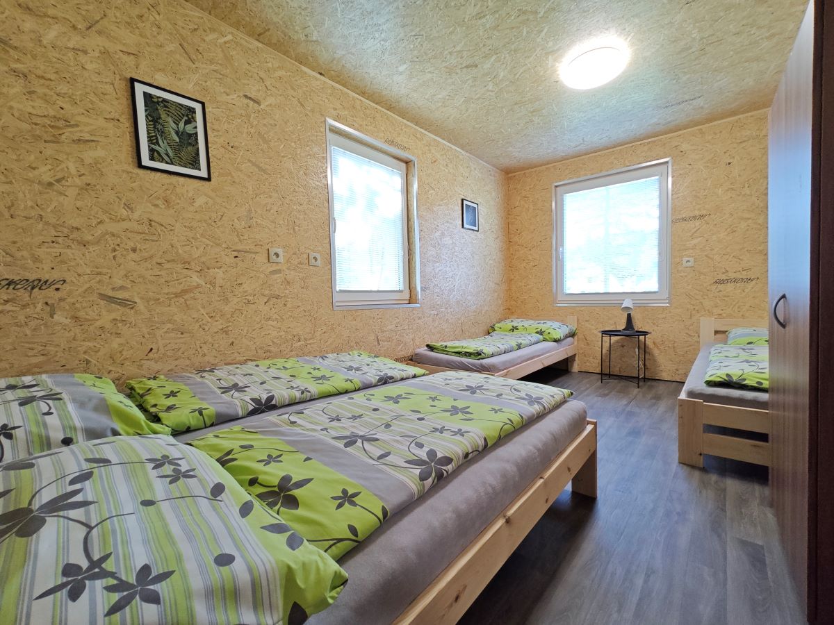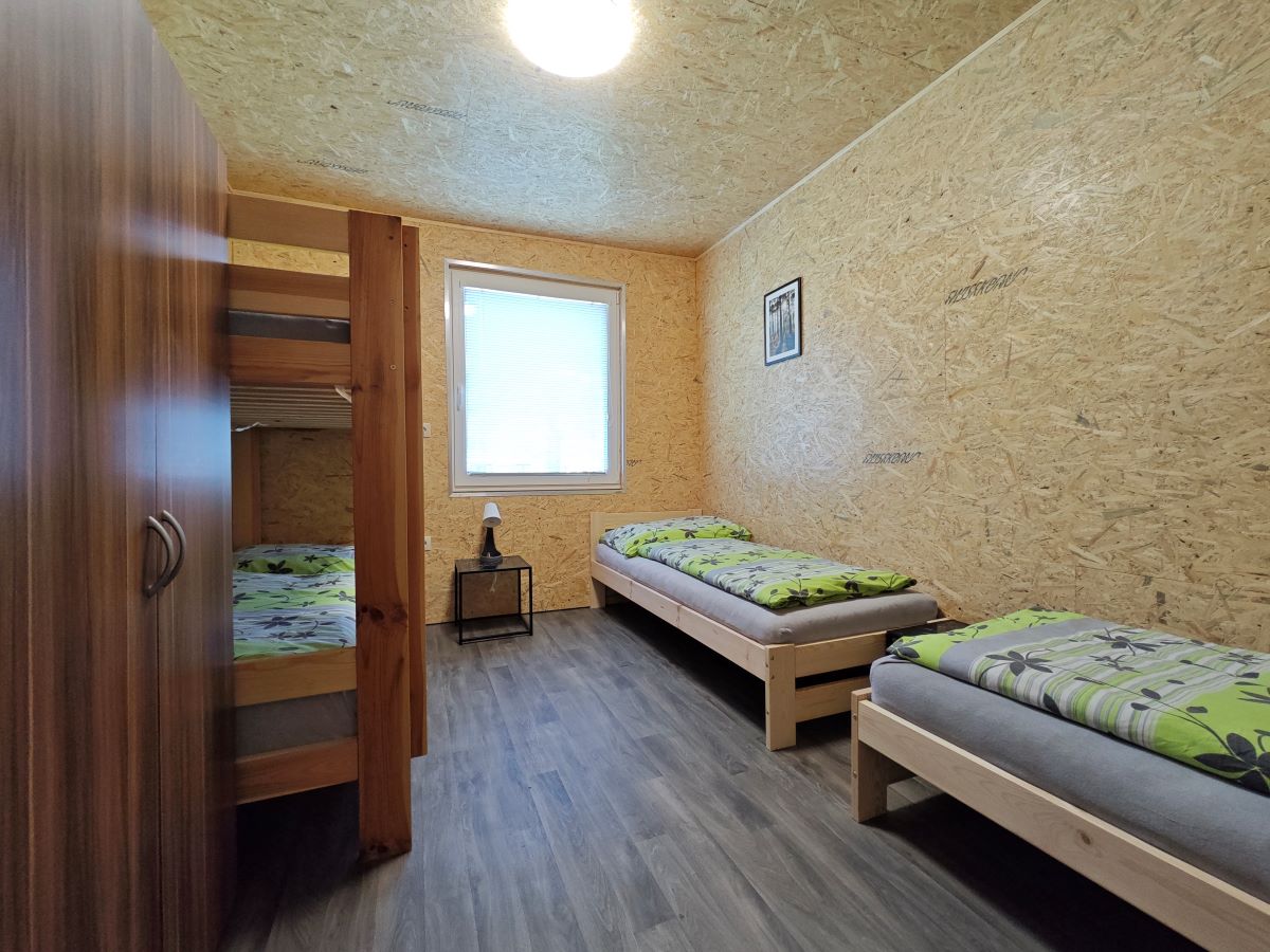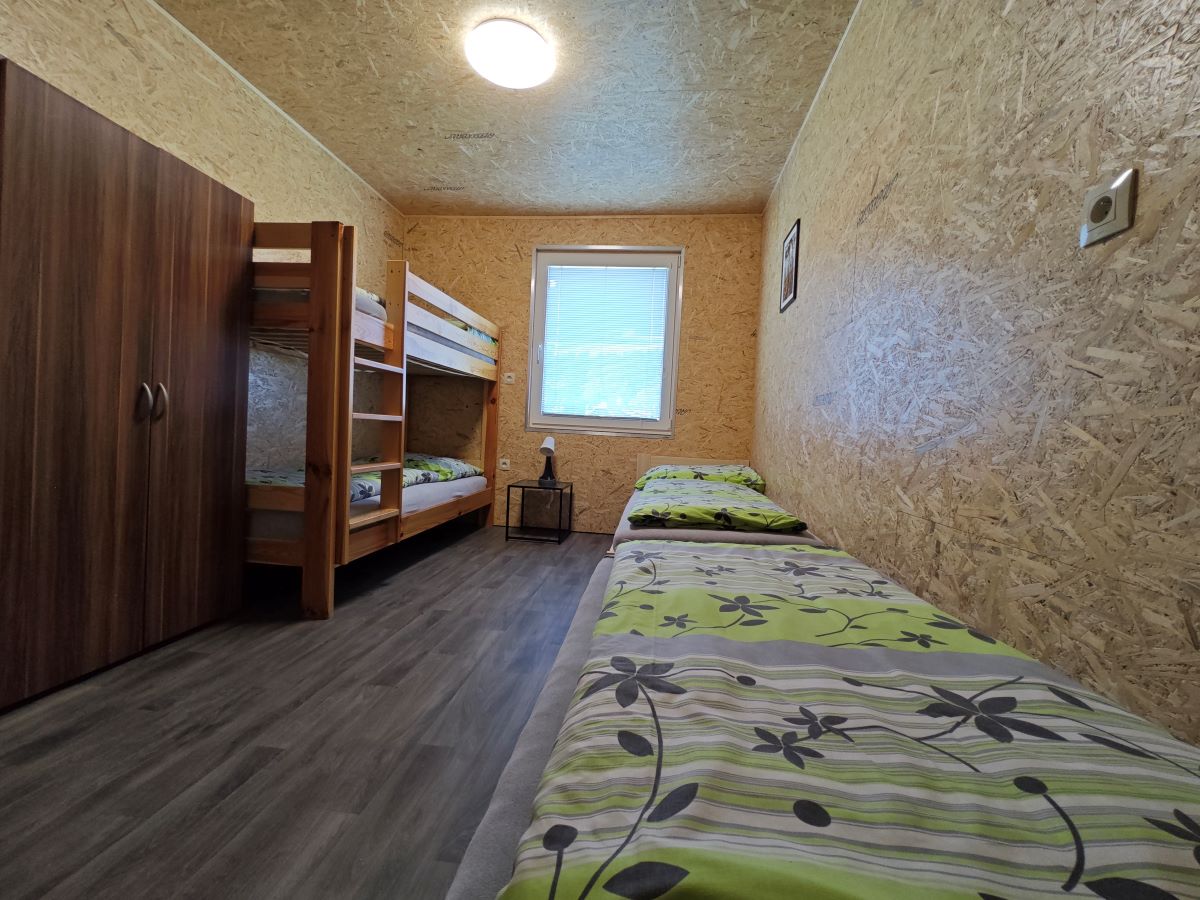V kempu se nachází ctyři bungalovy, v každém bungalovu se nachází jeden dvoulůžkový pokoj a dva pokoje čtyřlůžkové, všechny pokoje se nachází v přízemí. Ubytování je tedy možné pro 10 osob. Součástí bungalovu je sociální zařízení (pro celý bungalov společné) a také kuchyňka vybavená základním nádobím (hrnky, skleničky, příbory, pánev, talíře), plotýnkovým vařičem, mikrovlnou troubou a umývadlem s teplou a studenou vodou.