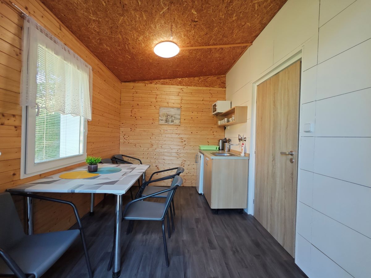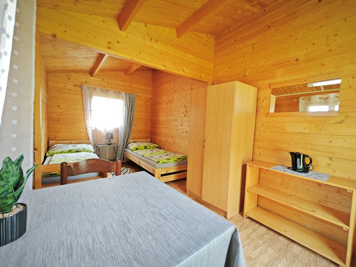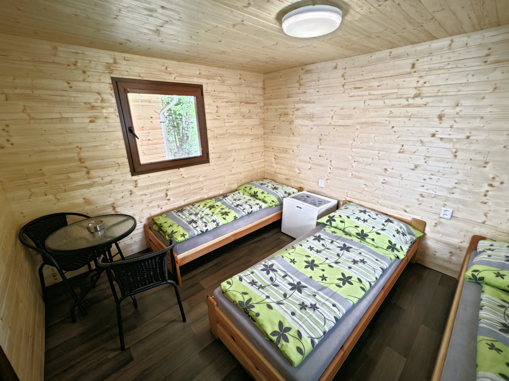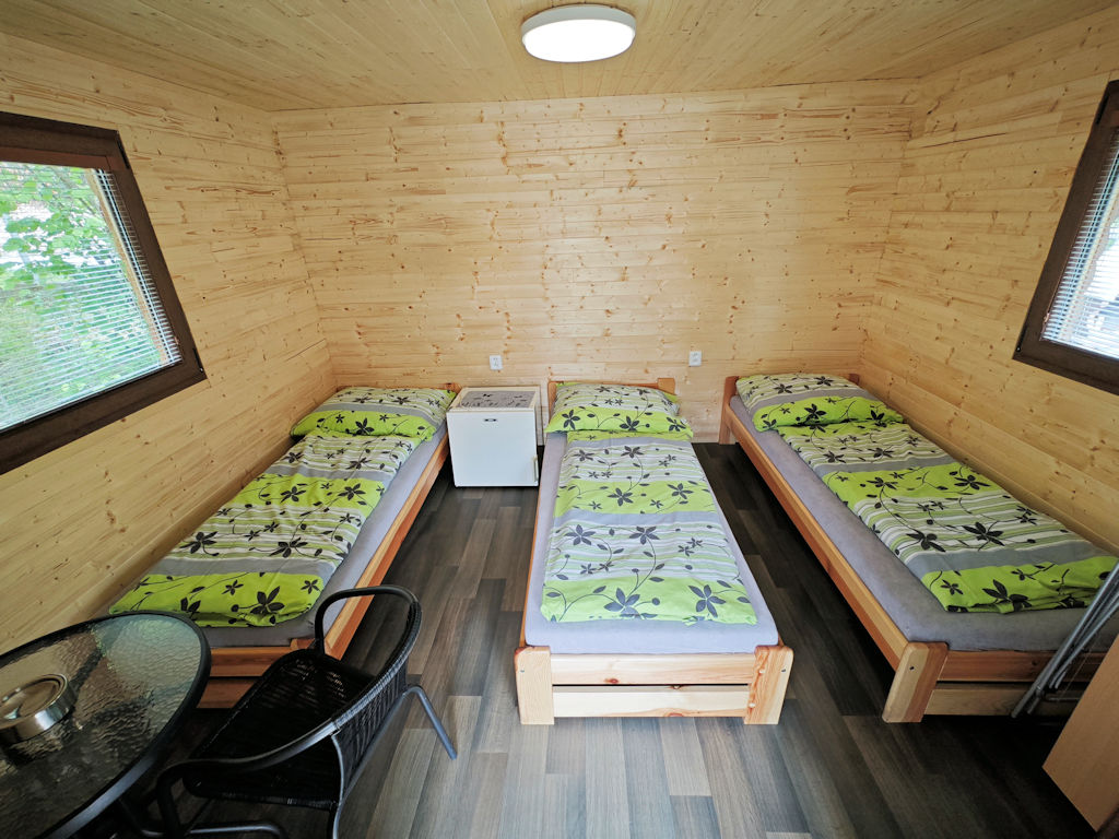V campingu se nachází 4 čtyřlůžkové chaty "WOOD". Chaty jsou vybaveny lednicí. Sociální zařízení je společné. V chatce se nachází jedna dvojpostel a dvě postele nad sebou. Chaty jsou umístěny v zadní části kempu.