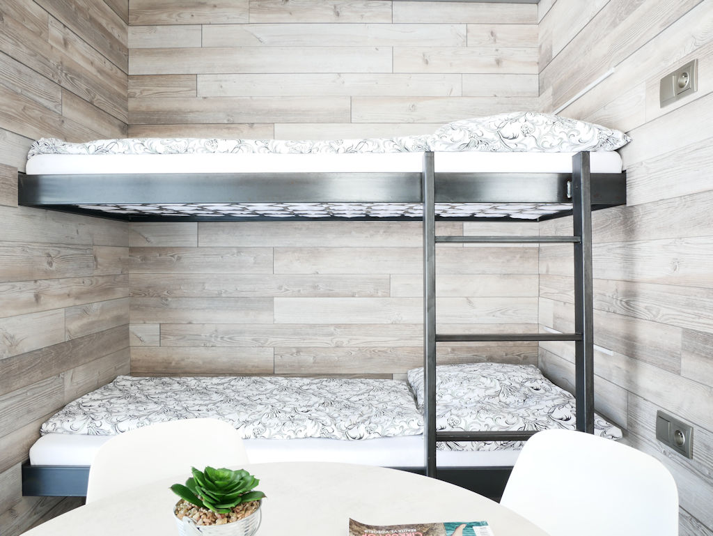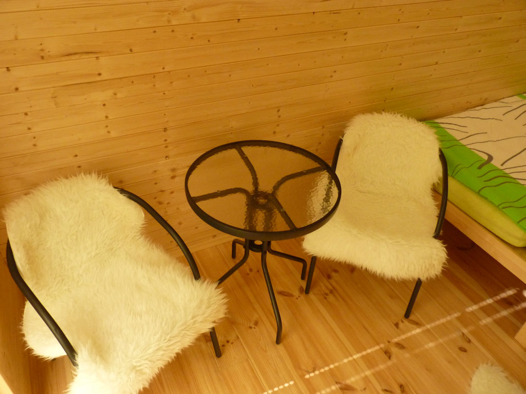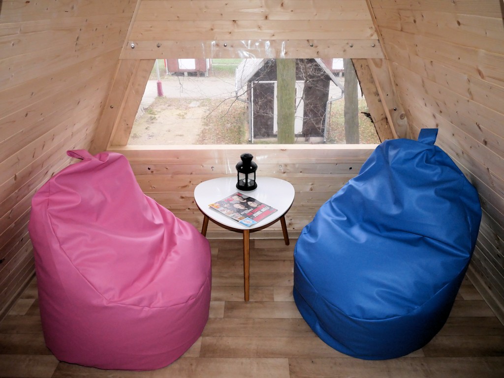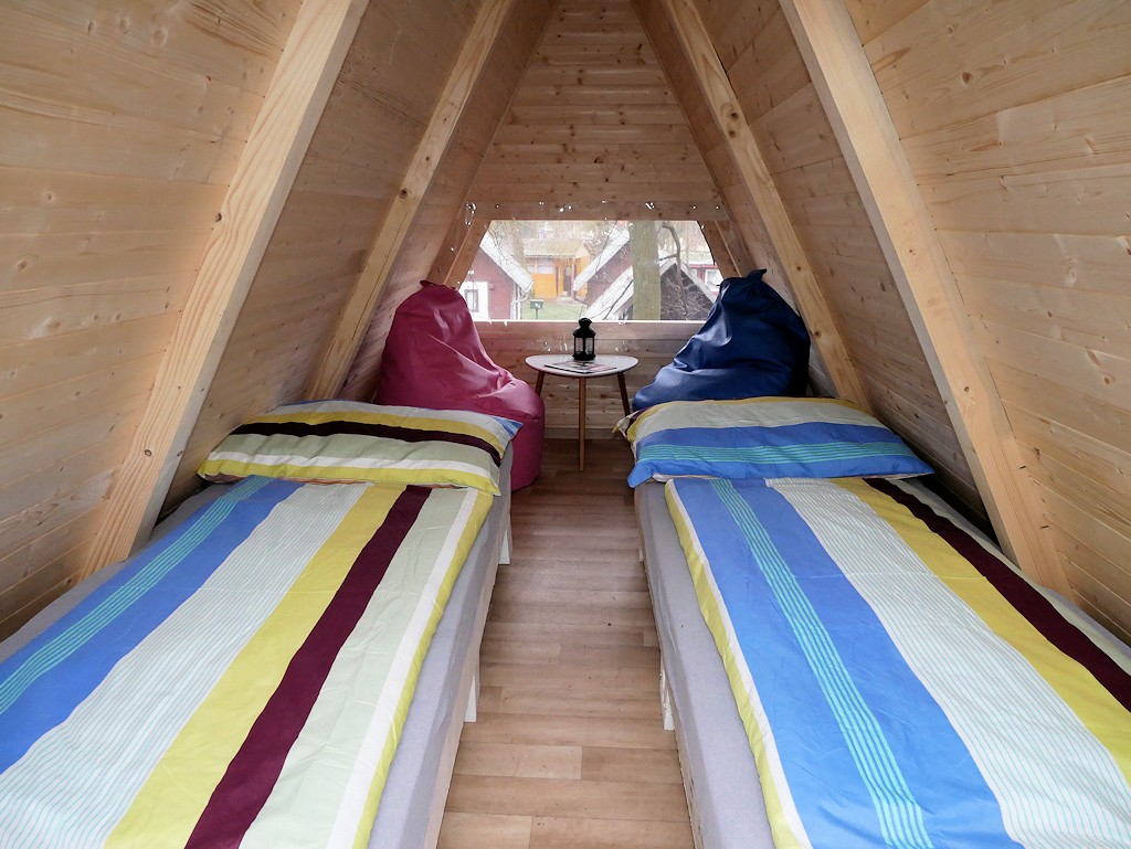 V campingu se nachází 4 čtyřlůžkové chaty "WOOD". Chaty jsou vybaveny lednicí. Sociální zařízení je společné. V chatce se nachází jedna dvojpostel a dvě postele nad sebou. Chaty jsou umístěny v zadní části kempu.