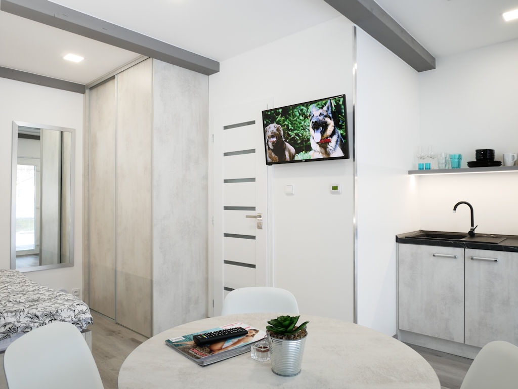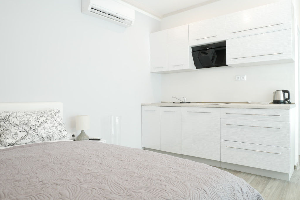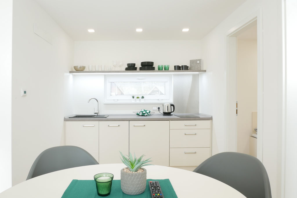 V campingu se nachází 8 studií "DELUXE". Studia se skládají ze samostatné ložnice, obývacího pokoje s kuchyní a toalet. Ubytování je možné od dvou do čtyř osob (některé apartmány jsou s možností dalších 2 přistýlek). Ložnice je vybavena manželskou postelí a patrovou postelí, v obývacím pokoji se nachází sedací souprava, TV, dekorační krb. Sociální zařízení je vybaveno sprchovým koutem, umyvadlem, wc. Ke studiu náleží také terasa s posezením vybavena zahradním nábytkem včetně grilu, jenž je průchozí do obývacího pokoje. Kuchyně je kompleně vybavena (lednice, trouba, nádobí, rychlovarná konvice, sporák atd.). Studia jsou umístěny v klidné části nad bazénem.
